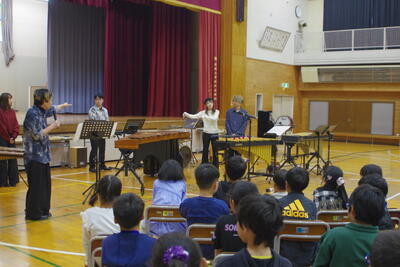 4年生が出演した音楽発表会。「教室大笑い」(合唱)と「いつも何度でも」(合奏)を演奏しました。毎日聞こえてくる歌声や楽器の音色が、日に日に上手になっていくのを感じていました。自主練習も積極的に行っていた4年生でした。